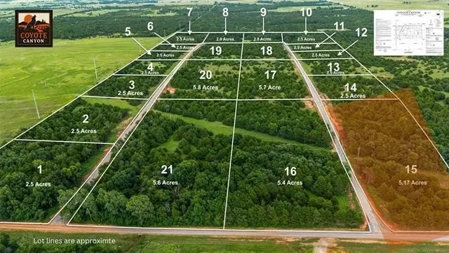 Discover Coyote Canyon — wide open skies, room to roam, and country living done right. Lot 15 offers 5.17 acres of peaceful rural living, situated just 1 hour from both OKC and Tulsa, and only 30 minutes from Stillwater. Whether you're building a custom home or planning a brand-new manufactured home, Coyote Canyon gives you the freedom to create your ideal homestead. With no HOA, residents enjoy independence while sharing responsibility for road upkeep— fostering both self-reliance and a sense of community. Utilities will need to be established, giving buyers the flexibility to build exactly what they need from the ground up. Listing agent is a member of the LLC that owns this property. Oklahoma License #175469.