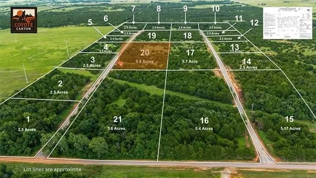 Discover Coyote Canyon — wide open skies, room to roam, and country living done right. Lot 20 offers 5.78 acres of peaceful rural living, situated just 1 hour from both OKC and Tulsa, and only 30 minutes from Stillwater. Whether you're building a custom home or planning a brand-new manufactured home, Coyote Canyon gives you the freedom to create your ideal homestead. With no HOA, residents enjoy independence while sharing responsibility for road upkeep— fostering both self-reliance and a sense of community. Utilities will need to be established, giving buyers the flexibility to build exactly what they need from the ground up. Listing agent is a member of the LLC that owns this property. Oklahoma License #175469.