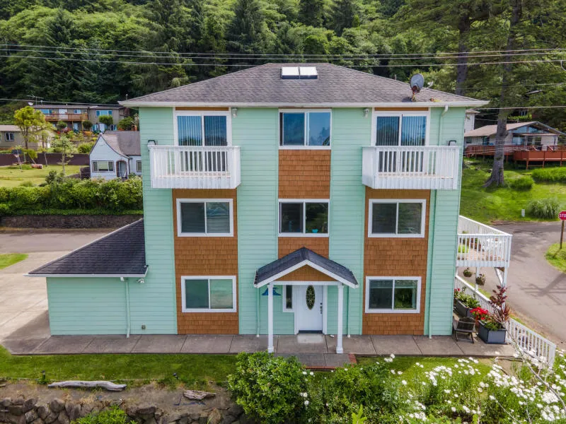 PANORAMIC PACIFIC VIEWS! 3 WEST facing decks, 2 master suites with fireplaces and JACUZZI tubs! Great location in Depoe Bay walking distance to shops and restaurants. WESTERN VIEWS and EXPOSURES. 4 BEDROOMS-4 BATHROOMS! This is a great option as an INVESTMENT property for long term or short-term rentals as well as a great option for owner occupied oceanside getaway or Bed & Breakfast! FULL BATH in every room. Gourmet Kitchen. In addition, is Commercially zoned and can have 2 MORE units built onto the lot for the ultimate INVESTORS dream!