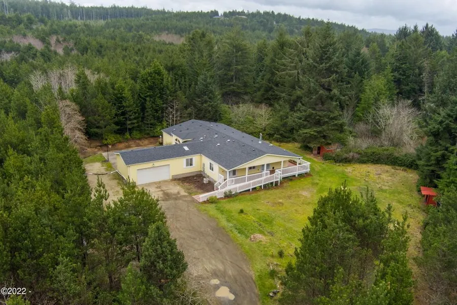 Amazing opportunity to live on 5.61 level acres and be close to the beach! This 3 bedroom 3 bath manufactured home has space for everyone with 2,642 sq ft. All one level living space with a ramped entrance. Site built Primary suite gives 591 Sq Ft. to the bedroom that can be open or closed off from main home. Secondary suite with attached bathroom is great for guests or family. There is a large garage/workshop space with loft storage, custom space that can be used as an office, craft room or artist studio. Paved level parking for RV storage. Private location on the coast situated between Newport and Waldport. Just a short distance to Driftwood State Park sandy beaches!