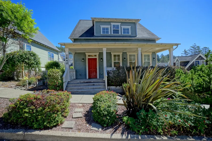 Elegant cottage home in the traditional coastal neighborhood of Olivia Beach on the Oregon Coast. Take advantage of this centrally located home in the heart of the community. Close to common area park with sand volleyball pit, grass field, fire pit and playground. The community outdoor pool with exercise room and beach access are a few blocks away. Enjoy this open floorplan with main level living, open great room w/gas fireplace and ceiling fan, kitchen island with granite countertops and family room. Plenty of sleeping with two primary bedrooms with ensuite baths, a third guest bedroom plus a carriage room above the garage with a full bath. Room for outdoor entertainment or relaxation with covered front porch, deck with hot tub and outdoor shower. Coastal living at its finest!