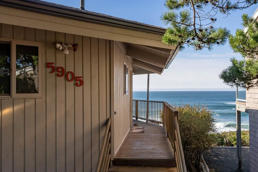 Classic Midcentury-Oceanfront octagon home in ever popular, Coronado Shores Beach Club. Some of the property's standout features include high beam wood ceilings throughout upper living area with a floor to ceiling brick fireplace in great-room, oceanfront deck, level front & backyards with viewing area, low-easy use maintenance. The property was built on higher portion of bluff to maximize views and sits high above ocean level, the protective Rip Wrap is in excellent condition. Coronado Shores is an established private community with seasonal saltwater swimming pool, clubhouse, oceanfront cabana, parks, secret trails & three separate community paths leading to miles of sand beach and ocean play.