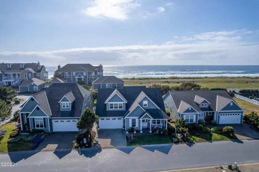 Enjoy life at the beach in this beautiful single-family home in the gated, beachfront community of Southshore in Newport Oregon. The home offers the convenience of main floor living, an abundance of sleeping areas for your family and guests and a wonderful west-side back yard to enjoy on those sunny summer days. The main floor includes an inviting open space living, kitchen and dining area; a generous primary bedroom suite with ensuite bath and walk-in closet; a formal dining room; an office/den or possible 4th bedroom, laundry room and powder room. The second floor has two guest bedrooms including one with a bonus alcove, full guest bathroom and a separate den area. The home is situated on a less traveled, private street with a cul-de-sac at the end.