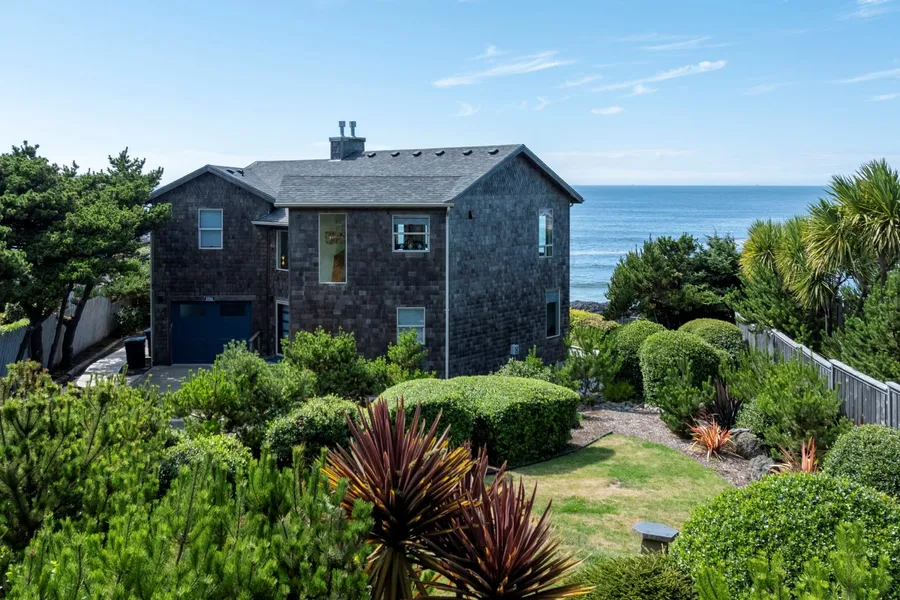 You won’t believe the magnificent setting of this beach home until you see it in person. When the Colombia River Gorge oozed with lava millions of years ago, the flow stopped just a few hundred yards south of the property. Enormous basalt rock formations were created on the ocean floor resulting in spectacular views from nearly every room in the home. The property is located directly above a small cove and private beach protected by the rocks. A visiting geologist said he would be happy to provide a written report, but added this is one of the best protected homes he’s ever seen on the Oregon coast. A short walk down stairs to the private beach will reveal the fortunate natural protection the rocks provide. The current owners extensively remodeled an already well-built house shortly after they purchased the home a few years ago. The wood stairs and flooring throughout the upper floor is new, solid oak that was finished on site. All the bathrooms were demolished and new showers, doors, vanities, toilets, light fixtures and mirrors were installed. All interior doors, baseboards and trim were also replaced. Extensive low-voltage art lighting was installed with dimmers. In addition, all the hanging light fixtures were replaced and new Hunter Douglas window coverings were installed. The upper cedar deck and west-side patio were replaced, expanded and 52” glass windscreens were installed. New roofing was installed and the contractor commented he rarely sees ¾” plywood under a roof. It was a very well-built home from the get go and features a very livable floorplan. The home lives larger than its 2400 square feet would suggest, with open space living areas and more than ample bedrooms on both floors. The primary bedroom suite including a bathroom and walk-in closet provides a great refuge for the owners. The home is located on nearly one acre of oceanfront land on a private street. The property is gated and fenced to create a real sense of privacy. There are cedar walkways all around the home and the expansive patio on the ocean side includes a 16-foot glass octagon surrounding a large and powerful propane firepit. The landscaping speaks for itself, with a great view of the front yard from the kitchen window. This is truly a spectacular ocean front setting and desirable beach home for the discerning buyer.