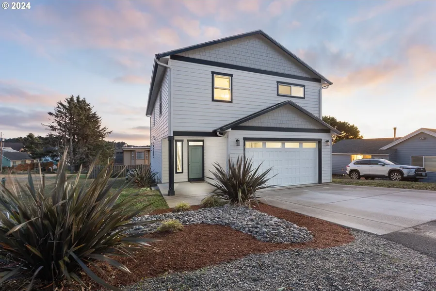 This custom-built 3-bedroom, 3-bathroom home in Lincoln City's Roads End neighborhood boasts stunning panoramic ocean views. Enjoy luxurious finishes and a welcoming main living area featuring a gas fireplace and large windows that frame the Pacific. The kitchen is a chef's dream with quartz countertops, ample cabinetry, an oversized island, and stainless steel appliances. Two spacious living areas offer plenty of room for relaxation and entertaining. Each of the two master bedrooms includes an en-suite bathroom, with a walk-in closet upstairs. Plus, there are convenient laundry areas on both levels. Step outside to two ocean view decks, perfect for soaking up the sun and enjoying the fresh sea breeze. Located near Lincoln City's beautiful beaches, hiking trails, and local shops, this home is ideal as a permanent residence, vacation getaway, or investment property. Don't miss outschedule...