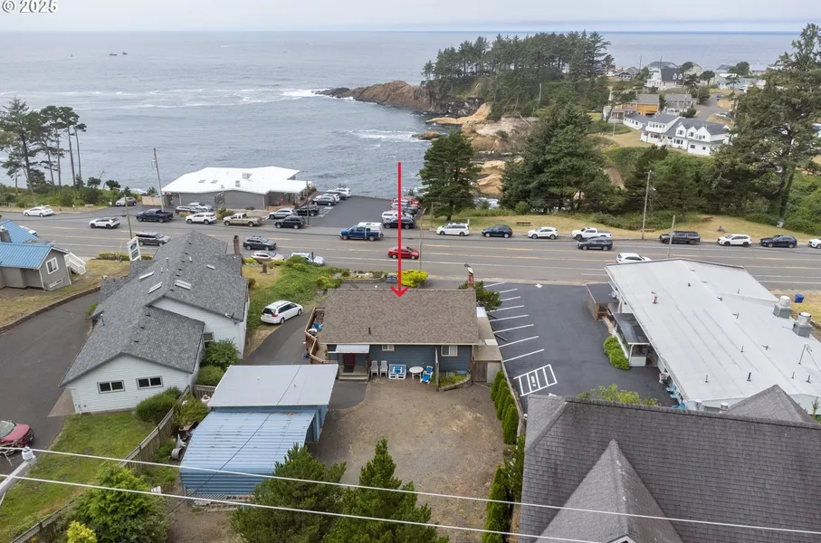 Exciting & constantly changing ocean views from this successful vacation rental with 2 separate units! Located on 2 tax lots w/plenty of parking for everyone including a 2 stall carport & a shop. Each unit has it's own entrance on different levels, a full kitchen, laundry facilities, gas fireplaces, separate electrical meters & unique therapeutic ocean views. The upstairs has the master bedroom on the main living area & a loft with 2 other sleeping areas. The ground level has 1 bedroom/1 bathroom and a separate 280 sq ft heated store room w/a full bathroom. Enjoy watching whales from the wrap around deck or hang out in the really cool covered, wind-protected patio with a full Ocean view.