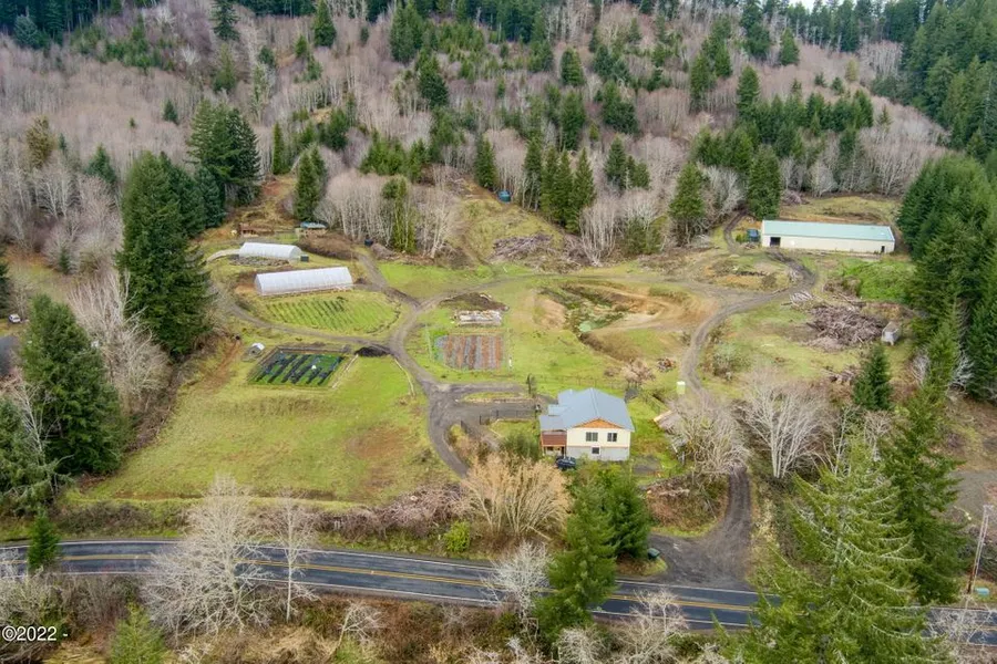 Don't MISS this extraordinary property located just outside the town of Yachats. This property boasts an incredible OPPORTUNITY as it currently has one dwelling, one 72x30 Oregon Valley green house, one 25x50 green house, one charming fenced in area featuring a camp trailer, deck, fire pit, look out tower, and one 120x72 SHOP set up with septic(not currently connected) and 8 200 amp services. You'll love the outdoor shower located near the green houses and a two person sauna located on the old garage concrete pad. This property has many possible potential uses(Buyer to do own due diligence) The property contains over 2 miles of cleared roads and paths ready for exploring, mountains, streams, ponds, water falls and the land owner get 2 ELK TAGS A YEAR....