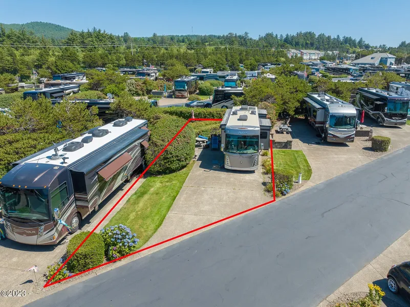 You need to see lot 46 in this beautiful resort. It offers a stunning back in lot, breathtaking ocean views and the utmost privacy with beautiful hedges. Situated near enchanting hiking trails, as well as an outdoor pool, spa, and laundry area. The gated Pacific Shores Motorcoach Resort presents an array of amenities including an owner's lounge, exclusive gym, indoor/outdoor pools and spas, rejuvenating saunas, and private beach access. Immerse yourself in the awe-inspiring vistas of the historic Yaquina Head lighthouse, while enjoying the convenience of private beach access.
