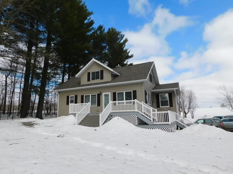 Hobby Hobby Farming anyone? Spotless country home, newer roof and siding, and pretty wrap around deck. Large kitchen and dining area with tons of newer cabinets. 2 bedrooms on the main floor and 2 upstairs. Drive under garage, plus detached garage and chicken coop. There is also a large pole shed, and all set on 40 acres of prime crop land