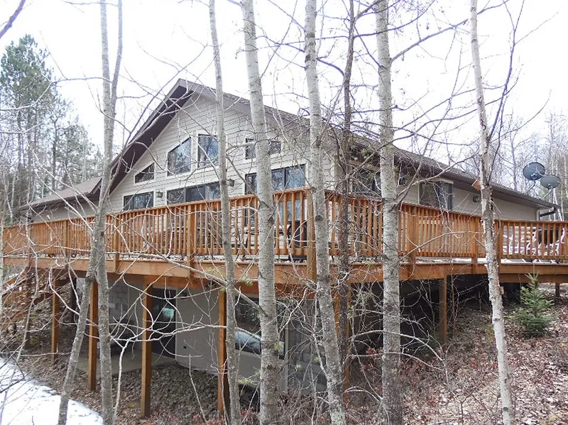 Exactly what you would expect in an almost new North-woods Home. Over 2 acres of wooded privacy, and 200 feet of frontage of beautiful Somo Lake. You will love this full rec Lake, shaped so that you have miles of shoreline to explore. The home is just like new. The kitchen boosts of an abundance of cabinetry, Cambria counter tops, glass tile back-splashes and slate top of the line appliances. The kitchen, dining, living room, has full wall of window and patio doors leading to the waterside wrap around deck, the place you will want to spend your summer meals. Master-suite and 2nd bedroom on main floor, along with over-sized laundry/pantry room. Walkout lower level is finished with a terrific family room, wire with speakers and surround sound, 3rd bedroom, and the bonus room 2 fireplaces make the home complete. There is an attached garage and a detached 36x28 detached for all the toys, ful...