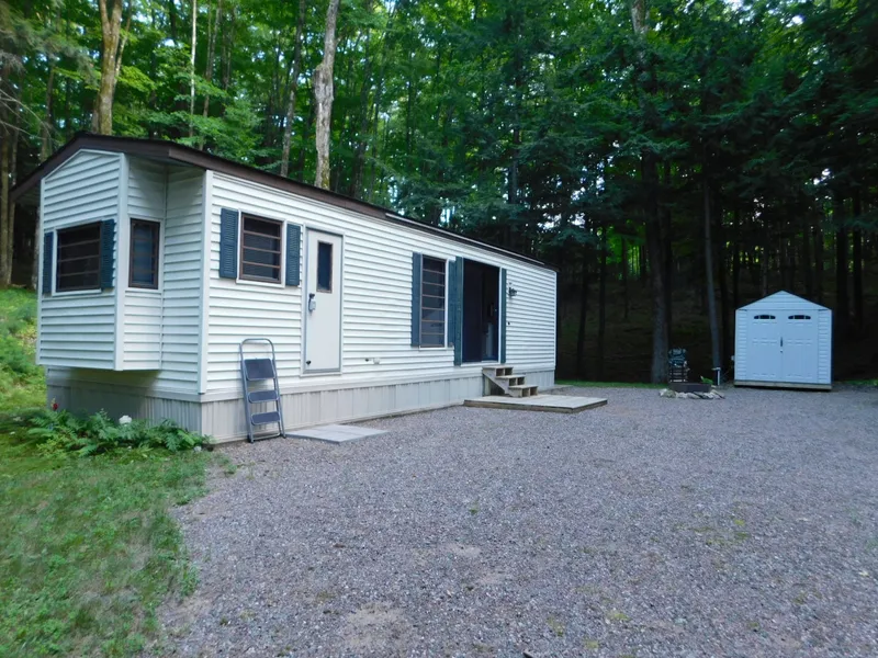 Such a beautiful setting! Sitting back in the woods, and rolling wooded terrain all around you, makes this very private and oh so pretty. One bedroom mobile home in great condition, with drilled well and conventional septic which was installed in approximately 2014. This is a great place to "Get away from it all" or future building site. You are across the road from Lake Alice, and very near to public boat landings. ATV and snowmobile right out your front door.
