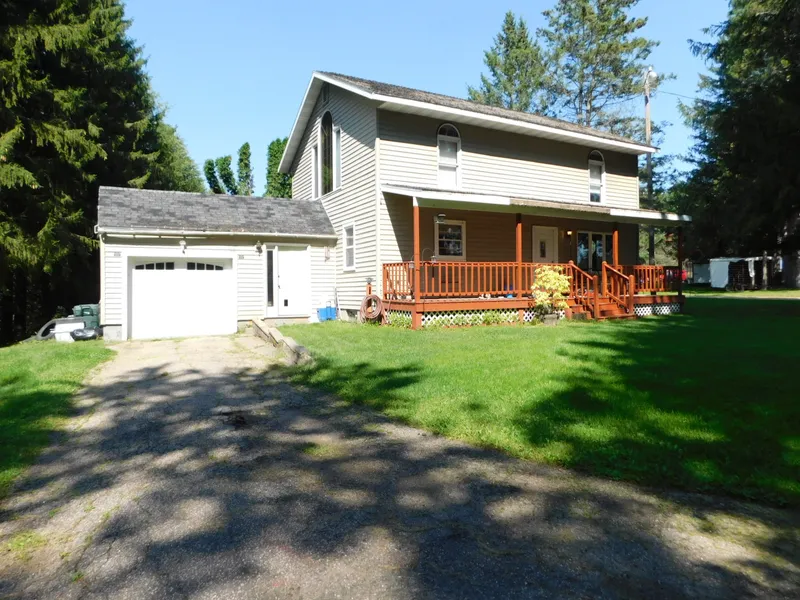 Right out of Merrill, is this 2 story home home, on a pretty over 2.8 Acre lot, lying along the Barnes Creek. Spacious living room, lots of kitchen cabinetry, bath and office on the main floor. Upstairs is 3 bedrooms, and 2nd bath. Coming into the home off the attached garage, is a nice big mud room to kick off your shoes and coats. Big Porch type deck overlooks the backyard. Storage shed in the front yard for the toys, or garden toys. Upstairs of home was built in 1998