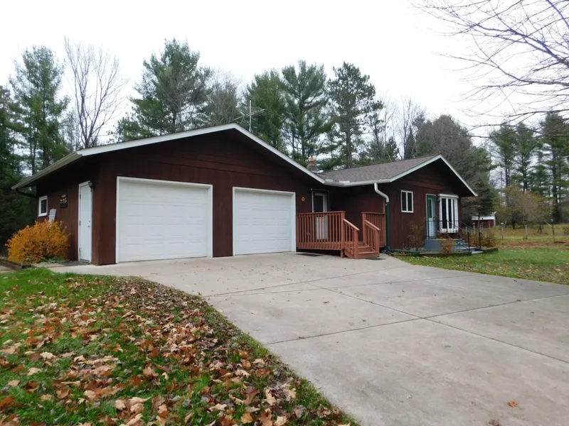 A little bit of country! Just minutes west of Tomahawk, this extremely well-kept ranch style home has a great kitchen, and open concept dining and living areas. With main floor laundry, and 2 bedrooms on the main floor. The basement is mostly finished, with family or rec room, small work room, and 2nd full bath. 2 car attached garage, another shop garage, a storage shed, and a gazebo type building for summer evenings. The septic is brand new and there is a large garden with garden shed for your tools. This parcel is a new split and will be 11 acres. The acreage is partially wooded and small drainage pond to bring in the wildlife. Because this is a new split the taxes will adjust accordingly.