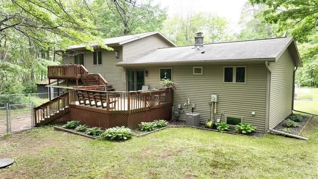 Discover the perfect Northwoods retreat or an ideal place to call home year round at N11278 Kaufman Road. Beautiful tri-level home designed for both everyday comfort and weekend adventure. Each level of the home is connected by short stairways, creating a unique and inviting flow throughout the space. This 4 bedroom, 2 bath home features durable LVP flooring and a galley style kitchen perfectly positioned between the main living areas. Relax by the fireplace in the cozy living room or gather in the bright dining area, which opens to a spacious deck. The primary suite offers direct deck access, along with a private bath and walk-in cedar closet for that extra touch of luxury. The lower level family room provides additional living space - ideal for movie nights, game days or hosting guests. A heated and insulated garage with newer doors and an updated front entry ensures convenience year round. Plus, a brand new Lennox high efficiency furnace installed in February 2025 adds peace of mind.