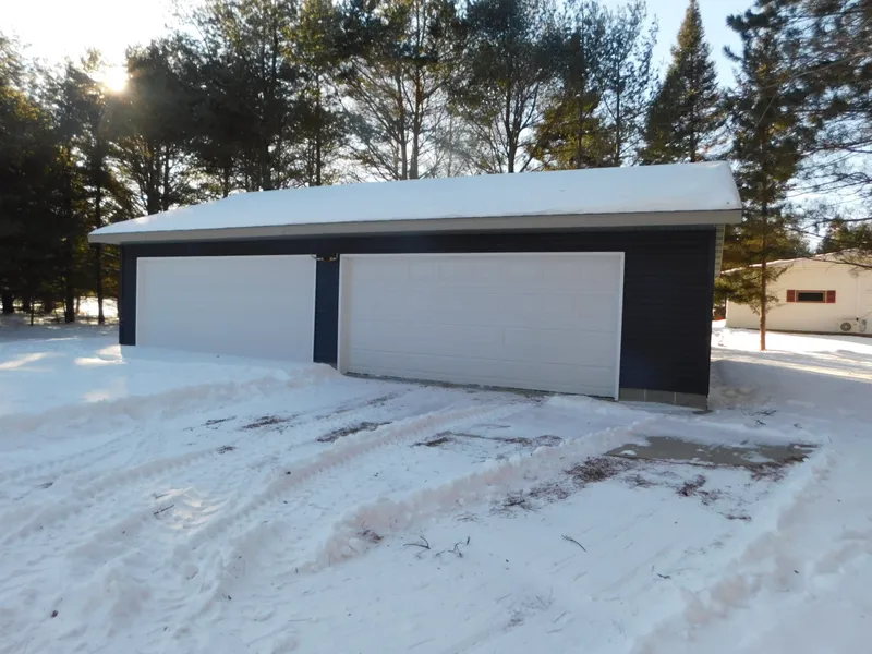 What a pretty spot for camping or future home for your home or cabin. Level lot on pretty Clark Lake. Clark lake then connects to another 30 acre lake. Swim fish, kayak and play. Sit by the campfire and enjoy the Northwoods. This lot has driveway into the lot, dock, power into lot, and a 40x30 newer garage, for the toys. Camper at property included. Motor home at property is not included, but maybe purchased at an extra price.