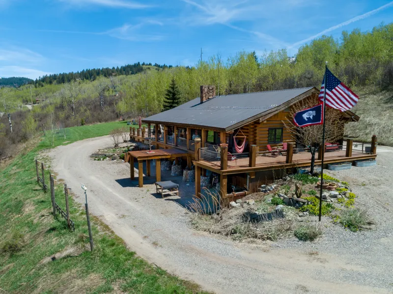 Welcoming, unique log home in Alpine on 4+ acres with NO CCRS. Elevated setting, with an expansive wrap-around deck boasting Palisades Reservoir, and mountain views. The inviting interior offers hardwood floors, a remodeled kitchen with travertine tile and a commercial Wolf Range, a cozy master bedroom on the main level, unique loft with windows and twin beds, river rock walls, additional bedrooms on the basement level, and a separate office nook. There is a large mudroom, bonus workshop, indoor/outdoor dog kennel, and 2-car garage. The landscaped yard has a sprinkler system, apple trees, raspberries, crab apples, lilacs, poppies, and more! 4.08 acres is included in two separate lots - enhancing the opportunities here! Country living awaits nestled in the mountains.