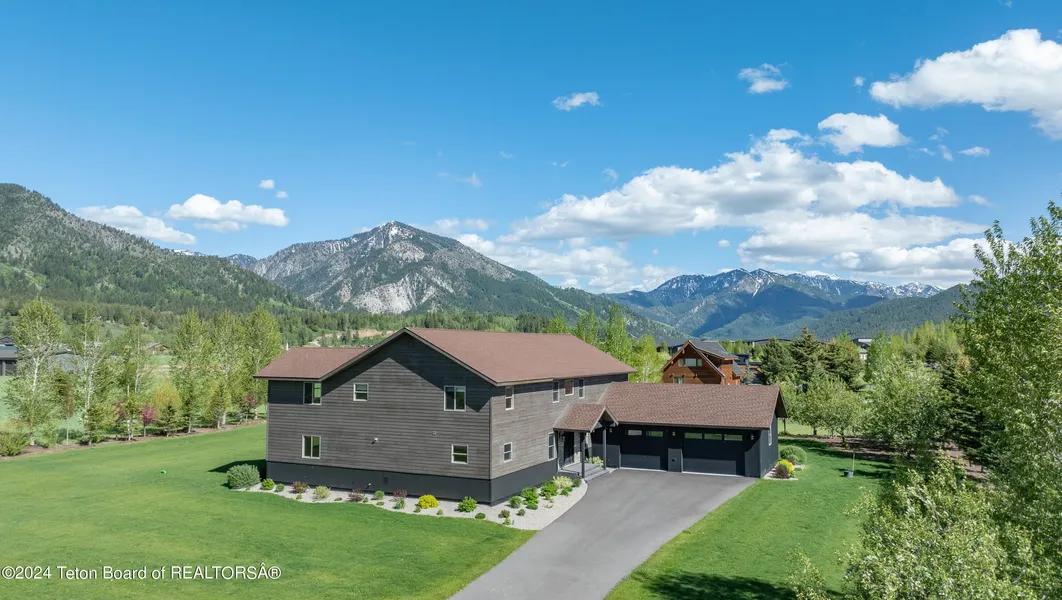 An incredible 4,600+ sq ft Alpine home on 1 acre, overlooking the beautifully developed Alpine Airpark community. Endless opportunities exist with this charming home and its big spaces! Large windows center the home strategically placed to take in the gorgeous mountain views. The main level has a large, open entertaining area completed with a spacious kitchen with abundant storage, and room to spread out and enjoy your company! Sellers have worked with a local Interior Designer as well to provide renderings for future planning. With three bedrooms and two floors of large grandeur spaces, this residence exudes character and is a great opportunity to put your stamp on it! Come live amongst a beautiful Alpine community and still be just a short ride to town and Jackson Hole.