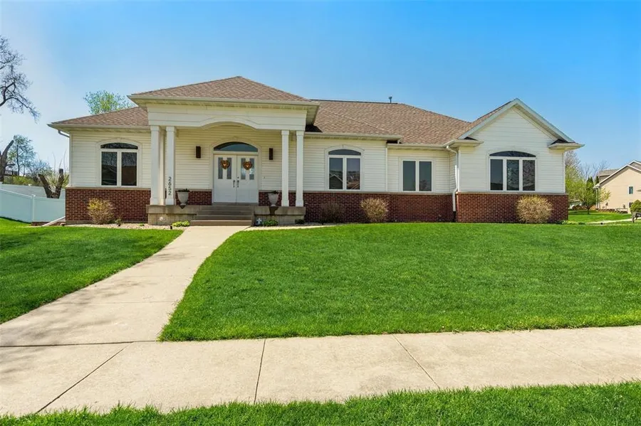 The covered porch welcomes you into a spacious foyer which provides a wonderful view into the sprawling great room. This open floor plan with volume ceilings is sure to please! The bank of windows across the back drenches the living room, dining area and kitchen with an abundance of natural light. The kitchen features updated appliances, nice cabinetry and solid surface counter tops. The split bedroom plan is very desirable. The spacious primary bedroom suite features a soaking tub, shower plus his and her closets. The main level boasts two more bedrooms, a full bath, laundry, and a flex room with French doors for whatever your heart desires. Head downstairs and be ready for a wonderful surprise! A bedroom, huge rec room, amazing bathroom and theater room with wet bar round out the interior. The privacy fenced yard with a great patio and new vinyl fencing is perfect for your outdoor fun....