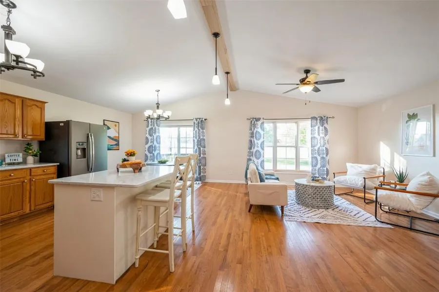 Take a new look! Fresh paint! New pictures! You'll be enamored with the updated open floor plan featuring quartz counter tops, hardwood flooring and a vaulted ceiling. With a park seamlessly extending from your backyard, which comes with an invisible pet fence, this property is a true gem! But let?s not stop there. The primary bedroom will support a king bed and has its own private bath. Two more bedrooms and another full bath complete the main level. The lower level boasts two more bedrooms, a family room complete with a gas fireplace, plus a versatile bonus room which could easily be a 6th bedroom, office or hobby room. The opportunity to customize this space makes it a perfect choice for your move. Wish the family room was bigger? No problem! You can easily remove the wall to combine two spaces into one! The garage is spacious with a service door to the backyard and is wired with a 220 outlet. The laundry is between floors for everyone?s convenience! New water heater, microwave and smoke detectors in 2024. AC serviced in 2023. Schedule a private showing today!