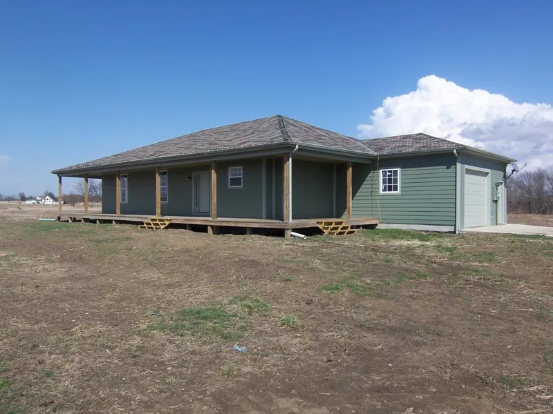 Country living 7 1/2 acres M/L, w/3yr old 4bed/3ba Ranch home w/attached garage, covered deck, Island kitchen, Full Basement, CH/A, Rural Water, home has blacktop frontage, 40 minutes S of Kansas City. Property being sold AS IS w/out Seller's Disclosure. MLS# 1874397