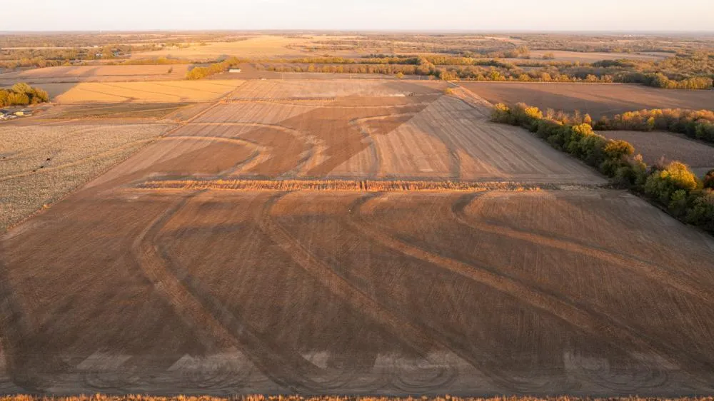This productive 50 +/- acre parcel in Linn County, Kansas just a few miles east of Blue Mound would be a nice addition to any farming operation. This property is located off Ingrahm Road, a well-maintained gravel road just off 31/52 Highway in between Blue Mound and Mound City, Kansas. This tract rolls very nicely from west to east and has great water control contours that allow for slow drainage into grass waterways. The current tenant has just harvested soybeans and is preparing to plant wheat.