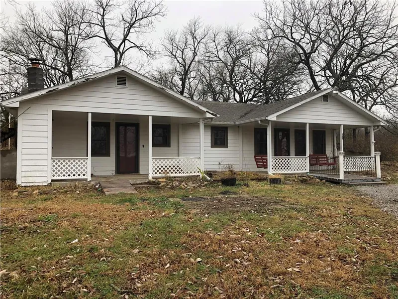 Opportunity deluxe! 2 bedroom 2 bath earth contact home on 10.5 shaded acres. The home has the floor coverings removed and is ready to be reinstalled the way you choose. A native stone fireplace in the living room is great touch. Outside you will find a 40 x 24 Garage with a roll up door, concrete, and electricity. A storage shed and a 30 x 16 tool/equipment shed. This place has tons of potential!! MLS# 2254156, Call 620-496-6699 Trenton Johnson 913-795-4555