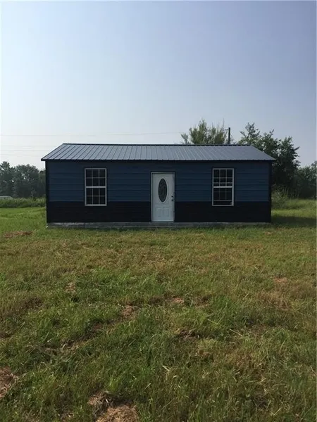 Beautiful flat lot at Sugar Valley Lakes, Mound City, KS. Located close to the main lake. A 720 square foot metal home that is placed on a cement slab on the lot. Home is being sold AS IS. Seller has left electrical and plumbing supplies. Rural water main is located across the road and there is an electrical pole on the lot. Hole has been dug for septic holding tank.