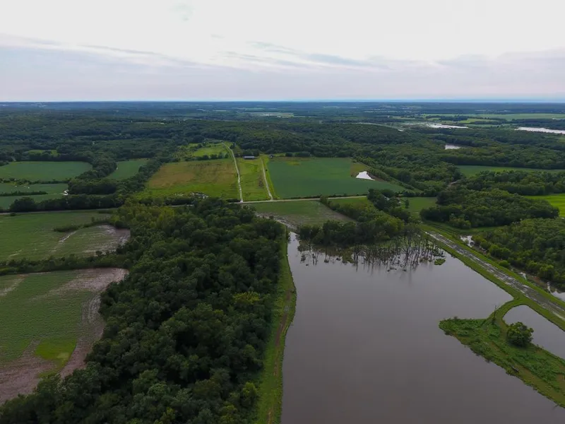 Location, location, location! That is the key to great hunting, especially in the waterfowl world. This farm is situated with the huge Marais Des Cygne Wildlife Management Area as its entire eastern border. The management area is made up of huge pools full of food that is planted specifically to attract and hold huge numbers of ducks and geese. Some of their pools are open to public hunting, but a large number of acres are refuges to ensure the birds have somewhere to rest and eat without being bothered, and there are thousands of birds that visit the area each migrating season. This farm is also located just south of one of the most well known duck clubs in southeast Kansas. This farm is also well thought out and has a professional setup. With levees and agriculture drains in place, the water control structures allow convenient flood control and a guaranteed water source to pump out of ...