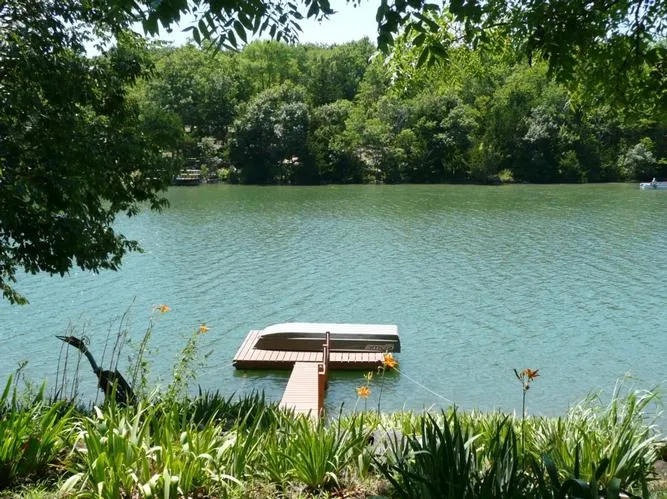 Quality throughout,from custom oak cabinets to manmade granite 5' shower to pine plank flooring to 30' screened/carpeted deck,mbr & ba on main level,2nd-4th brm & full bath on lower w/out level,3rd bdrm has private screened patio O'looking lake, all appliances & most furniture including leather couch & chair,flat screen & media center, Yard is landscaped w/water features front & back among several metal sculptures created by artist owner, only electrical cost as all water is pumped from lake, this is one speculator home! Note* 4th bdrm is currently used as media rm.