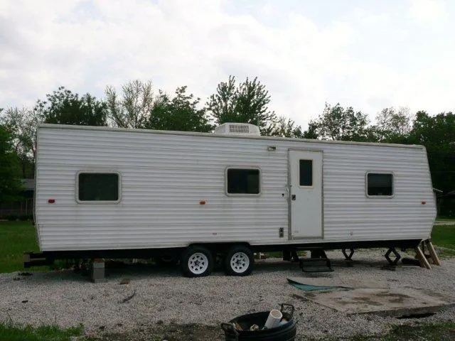 Very clean 32' travel trailer, sleeps 6 to8, full bath, full size fridge, lp cook stovetop w/oven, Rural water, 1500 gall holding tank, great hunters cabin or weekender.