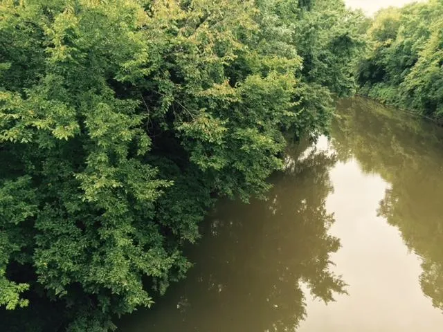 sloping hill to the bottom groune that aleads to the Big Sugar Creek. The West side of the property is the creek.