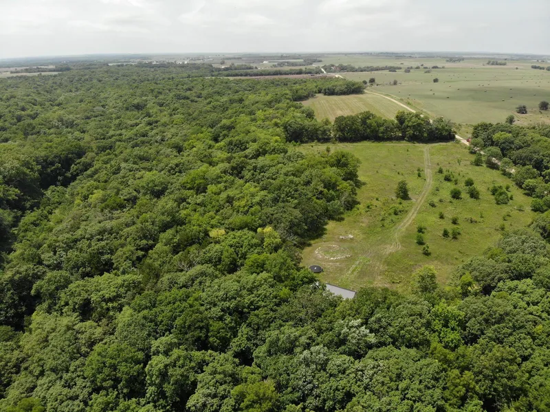 Linn County, KS Seclusion in the Woods!! This 27 acre tract is an outdoorsman's dream. Whether you are a trophy hunter or love hiking and privacy, this place is super cool. The well thought out 1,000 sq ft modern built cabin is tucked in the woods approx. 300 yards off the road. The west views are an open meadow with treacherous trails and hiking throughout the farm leading to multiple, excellent hunting spots. The most experience hiker will be challenged with the trails having 100 foot elevation change. A wet weather creek runs through the lower elevation of property. Additionally, a primitive straw bale octagon house is still intact tucked along a walking trail. Huge hard wood timber from hickory, oak and hackberry providing a solid food source for the wildlife. The new home is finished on the outside and framed including rough plumbing on the interior. Home requires finishing on the interior. Brand new septic system and water holding tank is in place. Electric is not hooked up. Ideal solar candidate. Current owners planned to run solar.