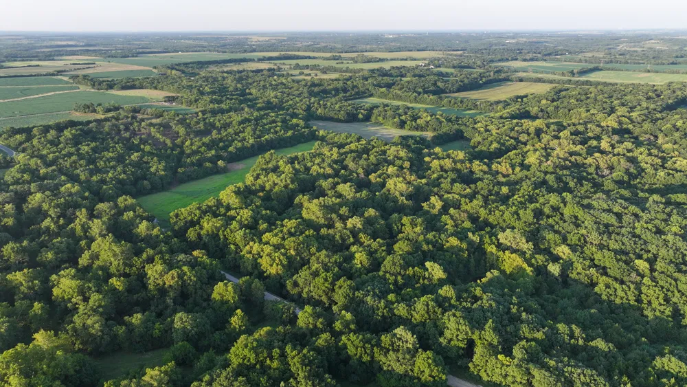 This 35 +/- acre property is located in west central Linn County, Kansas. The property has 6 +/- cropland acres primarily consisting of Dennis and Verdigris silt loam soils that have an NCCPI overall weighted average of 77. The cropland acres have been seeded to a wildlife food plot mix for this year, and do not have a tenant farm lease agreement currently in place. The remaining 29 +/- acres are loaded with cover, including giant hardwoods, cedar thickets, and tall warm-season native grass edges. The timber stand also includes a great number of marketable walnut trees. Landers Creek winds throughout the south side of the property, providing a year-round water source and natural wildlife travel corridor. The north ridge of the property is a south-facing slope that sets up well for a whitetail winter bedding area.