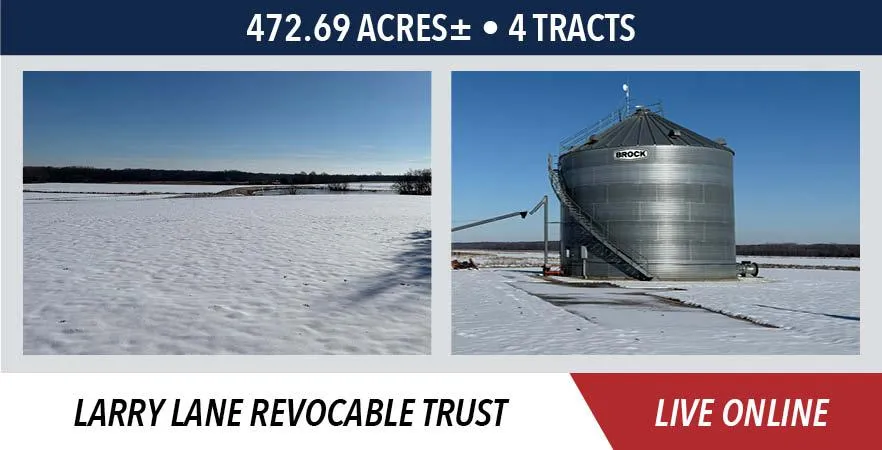The Lane land will be sold on a price per acre basis, based on surveyed acres. All tracts will be offered through the marketing method of Buyers Choice, whereas the high bidder can elect any of the tracts for their high bid. If the high bidder does not elect all offered tracts, then the remaining tract(s) will continue to be offered Buyers Choice until all tracts have been elected. The tracts will NOT be offered in their entirety at the conclusion of the auction.