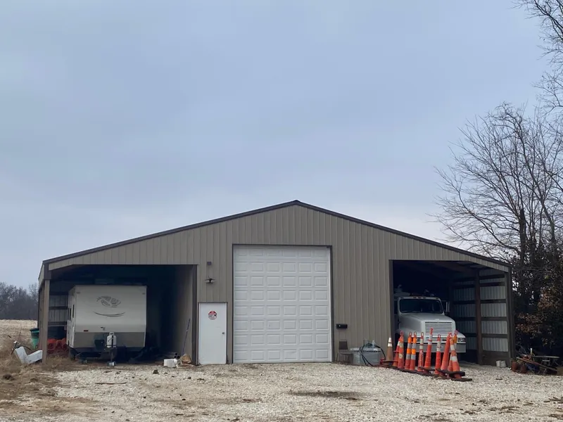 This shop is currently used for base camp and storage for a local business and is a 24x40 enclosed shop, with matching 16x40 lean-to's on each side. One 12x13 door along with a walk-in door. Call Luke Shoemaker-660-676-2218 or Julie McMillin-515-779-4869 with questions or to schedule a showing.