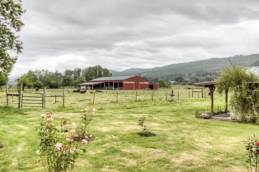 This property is very diverse with a one acre home site, 22 acre hay field (has produced up to 74 tons of hay), 4 acres leased to a Christmas tree grower, 15 acres of fenced pasture, and 12 acres of Douglas Fir trees replanted in 2001, that you can see on the hillside from the home. The orchard consists of apple and pear trees, along with grapes. Sorry, you cant have the Rose Gardenseller plans on taking them as they have been in her family for years and have survived many moves.