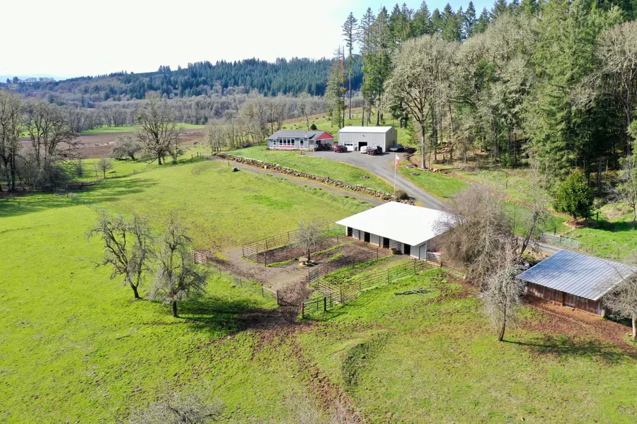 (3bd + office/2ba). Shop with heated tack room, finished storage