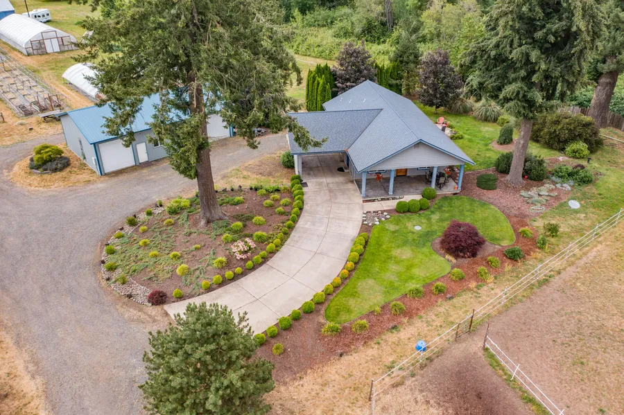 Nestled at the end of a long driveway, the newer home offers complete privacy at the heart of the property. This farm includes 14 acres of water rights, excellent well-drained soils, mainlined irrigation, one spacious barn, a very versatile shop, and six greenhouse structuresperfect for anyone looking for a sustainable lifestyle, growing a market garden, and/or raising livestock. These high-quality soils w/ water rights can support nearly any row-crop, berry plantings or orchard that thrives in this region.