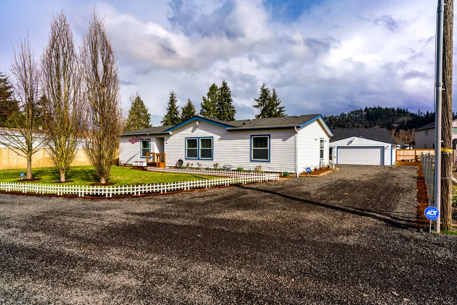 Move in Ready! Home features 3 BD, 2 BA, situated on 1/4 acre lot, open circular floorplan and several recent updates including new appliances, flooring, interior paint, blinds, fixtures, front steps & rear deck to name a few! The living room is plumbed for a gas fireplace, kitchen has lots of storage plus pantry, laundry/mudroom, primary has ensuite & walk in closet. Outside has deck, two sheds, raised bed, oversized two-car detached garage/shop wired 110 & 220V, partially fenced & plenty of room for RV.