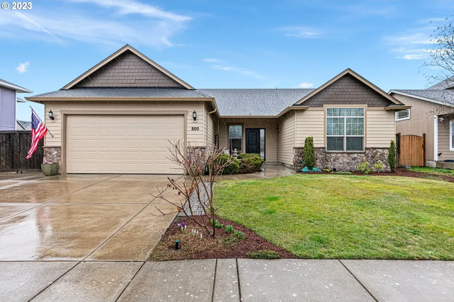 Modern Single-level Harrisburg gem! 3 bed/2 bath home w/den, lrg vaulted living room w/gas fireplace & sliding door onto patio. Lrg kitchen w/cabinets galore, eating bar, built-in desk, & dining area. Kitchen w/SS electric appliances & also plumbed for natural gas. Home has a great separation of space. Spacious Owners Suite w/walk-in closet, en-suite bathroom w/ dual sinks & walk-in shower. Fully-fenced backyard. Gated RV Parking. Lrg driveway. Shed & raised beds. New Heat Pump as of Aug '22.