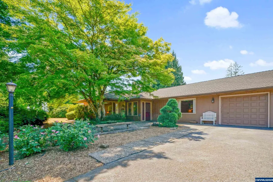 Accepted Offer with Contingencies. This 3465 sqft home includes 3 bedrooms with full ensuites, a 4th bedroom/office with an adjoining full bath, and an additional half bath. With a full-sized swimming pool heated by natural gas and a fenced in horse pasture, this rare one level home sits on 2.6 acre lot with varied fruit trees in a park like setting surrounded by natural beauty. Great Corvallis neighborhood with low Linn County taxes. A once in a lifetime opportunity to put your own style on this rare gem.