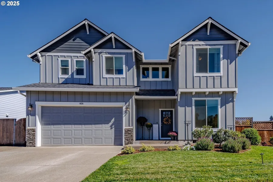 This nearly new River's Edge home combines modern design with timeless details. Offering 4 bedrooms, 2.5 bathrooms, and 2,399 sqft, the open floor plan showcases luxury vinyl plank, a cozy living room with an gas fireplace, and a gourmet kitchen with quartz counters, stainless appliances, gas range, and craftsman cabinetry. The en suite has a garden tub and large walk in closet. Outside, enjoy a covered deck, landscaped yard with UG sprinklers, and the convenience of a peaceful neighborhood close to I-5.