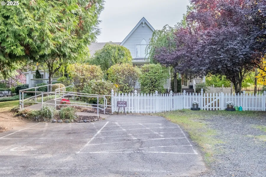Welcome to the perfect commercial property with the potential for simultaneous residential use. The Bramble House has been a successful events center for many years, hosting gorgeous weddings, fundraisers, birthdays, and community gatherings. Before that, it was a lovely restaurant. It would make a wonderful gift shop, antique mall, or bakery. The options are endless! There is also the potential to live in part of the building while operating your business out of the rest (requiring city approval). Featuring multiple large rooms, a gas fireplace, a bar area, a wrap-around covered porch, and a beautiful yard with lots of seating potential and stunning wisteria in the spring, there is so much there to make your business a success. The excellent commercial kitchen has it all, with multiple fridges, a grease trap, three sinks (hand washing, dishes, food prep), and so much counter and storage space. There are 2 ADA half bathrooms for your guests (one with a washer and dryer) and a full bathroom. The quiet location is tucked away with privacy and few close neighbors. The grounds are skillfully gardened and feature plenty of herbs and some fruit trees (no spray!). The parking lot provides ample parking and the two sheds give you extra storage options. Schedule your showing today!