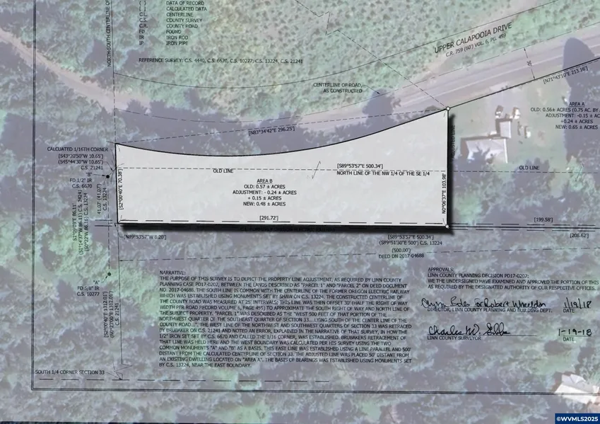 Secluded 0.46-acre lot on Upper Calapooia Road, just minutes from the river. Zoned Farm/Forest, a conditional use permit is required for residential construction (buyer to verify). A recent survey is available, and the property has full road frontage. Nearby properties have a 65-ft well and standard septic, offering a promising indication. A peaceful setting with great potential! Buyer to do due diligence with land use on conditional use permit.