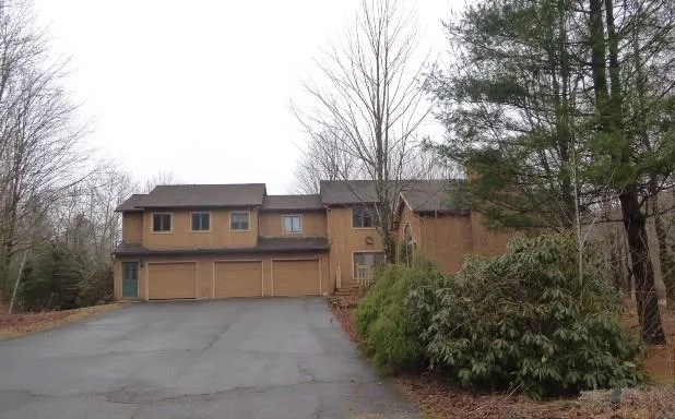This won't last long. Over 9 acres of beautiful serene land comes with this 3200 square foot contemporary. 12 rooms includes a 3 room in law setup. Main house has 9 rooms which includes eat in kitchen, formal dining room, living room and family room, both with fireplaces, wide open foyer, 4 spacious bedrooms and 2 1/2 baths. Lots of oversized windows allow natural light throughout. House has been newly roofed. It has 5 garages, with 3 under house and 2 detached and connected to workshop/barn. Views of a pond plus a babbling brook. Formerly used as a Christmas Tree Farm. You will be in heaven in this remote setting. Call now to preview. This property is eligible under the Freddie Mac First Look Initiative through 7/21/2019 for owner occupant offers only.