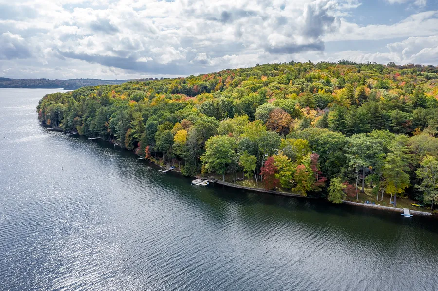 Magnificent Modern Lakehouse - wide open spaces, walls of glass and soaring ceilings overlooking expansive 200' waterfront with docks, decks, and patios. This house has it all - Poggenpohl kitchen with all the bells and whistles, large master suite main level with walk-in closets and sauna plus office / library loft, 3 additional spacious bedrooms main level, plus a separate studio / suite second floor with full bath. One of a kind lakefront living!