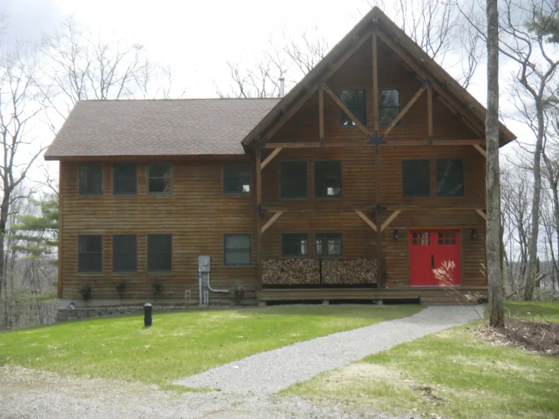 Incredible post and beam with soaring ceilings, massive timbers, wood floors throughout, stunning kitchen and baths. Seasonal lake views on a quiet cul de sac. Walk out basement with workshop, two car garage. Plus all the amenities of Woodridge Lake, pool, tennis, marina, basketball court, 12,000sf club house, 4 sandy beaches.