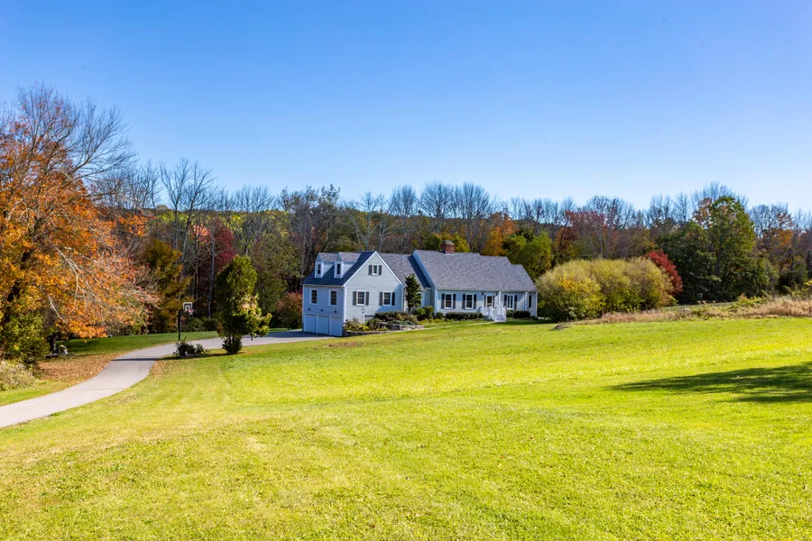 A CHANGE OF HEART Now gives you the opportunity to own this PRIVATE home set nicely back through a stonewall entry on 5 country acres off desirable road in Litchfield that features 10 rooms, 3 baths, 2 half baths, terraced deck, screened room and wonderful stoned waterfall accent. Fantastic home for remote working and learning with both a great office space as well as an upstairs sitting/study room w/bath. Open Kitchen w/dining area accented w/arched brick fireplace w/woodstove and sliders to deck. Both formal Living room w/fireplace & formal dining room can provide space for those large gatherings. First Floor Primary Bedroom ensuite offers full bath, walk-in closet, French doors to deck and sitting/office or nursery room. An expansive family room can accommodate multiple uses and has spiral staircase access to upper office. If you really need more room, check out the lower level rec room for a place to play video games/exercise/or home theater. A wonderful outdoor space includes fruit trees, mature plantings, patio area w/waterfall feature plus possible room for pool. And don't miss the super storage space under the deck. Rural country setting yet minutes to Litchfield Village Green, shops, restaurants, hiking, and boating, etc. If you need room and quiet, this is your Great Escape! RECENT UPDATES are New Boiler, new dual oil tanks, refinished wood floors, new tiled kitchen backsplash, newer indirect water heater, 2017 roof.