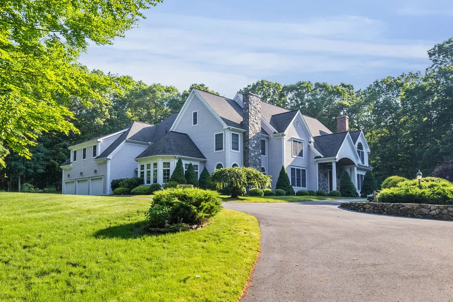 Sitting at the top of a knoll, up a winding gated private drive, can be found this modern colonial with over 6,000 square feet of living space. With 5 full bedrooms, 5 full baths and 2 half bathrooms on the first floor, this comfortable yet roomy home sits in serenity with an extensive water feature and mature landscaping surrounding it on 13.14 acres. A formal circular drive leads to a large covered porch beyond which is a formal entry area with large coat closet and half bath powder room, a formal living room with fireplace on one side and a circular stair up to the second floor on the other. The main floor also consists of a formal dining room, eat in kitchen with generous island, granite countertops, and cherry wood cabinets punctuated by a subzero, Viking double oven, warming drawer, electric range, and Bosch dishwasher. A dedicated office is adjacent to the comfortable family room with large stone fireplace and attached sun room. Main floor bedroom suite has wheelchair accessible doors, wheelchair accessible shower, and walk in closet. The spacious master bedroom has an on suite bath with shower, soaking tub, double sinks, and private toilet area. Extensive walk in closet and changing room join the bedroom and bath area together. Additional 3 bedrooms, all with on suite bathrooms and generous closet space are located on the second floor. Three car garage and massive bonus room above are also accessible by second stair case with a vestibule area at the top of the stairs. The original 13.14 acres of this property was bought all at once, however the entire house has been developed only on a single 5 acre parcel. The additional 8 acres can be sold as 2 separate 4 acre building lots, or developed, or conserved for privacy. The house, built in 2002, has hardwood floors throughout and was built with quality materials. A Pool permit was approved in 2015 but never added. The second floor back staircase can be fitted for a movable chair assist to the second floor f necessary. The security gate allows only for the entrance of announced visitors. The first floor has 9 ft. ceilings throughout while the second floor has 8 foot ceilings. The attic is large enough to easily expand and add a third floor if desired. Quiet, serene, and well maintained, this is a perfect full time house or an amazing weekend escape.