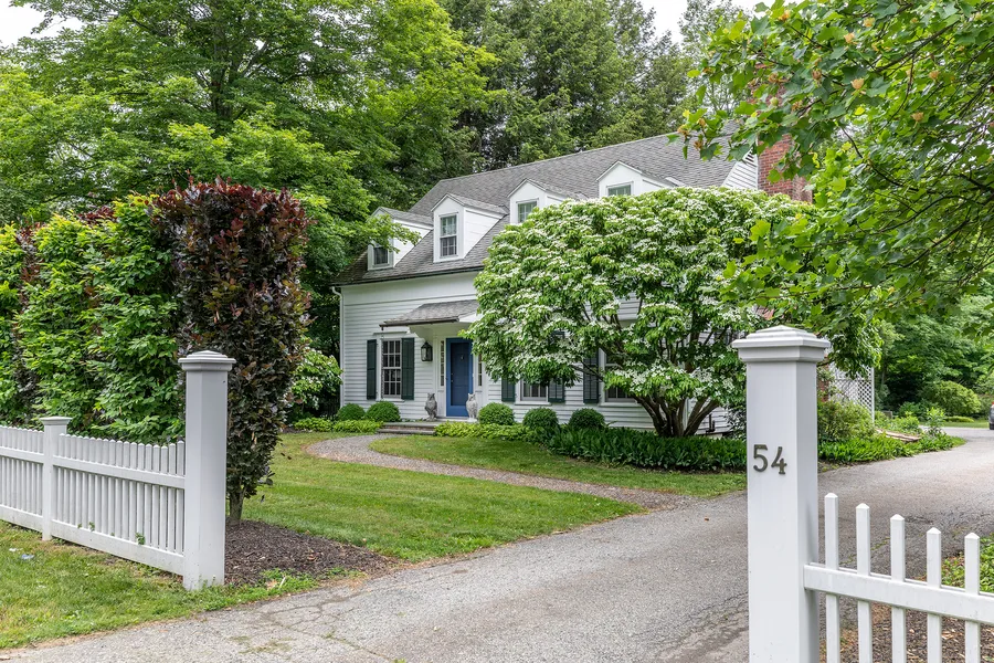 Behind a hornbeam hedge and white picket fence is this gracious, historically significant antique home known as the Warner-Kimball House. Extensively and beautifully renovated in 2020 by an interior designer, it is located in the heart of Salisbury and is an easy walk to all of its services and amenities. Off of the long entrance foyer is a stunning 27 foot living room with three exposures, fireplace and a ceiling height over 9 feet, rarely found in a mid 19th century house. The bright dining room leads to the dramatically upgraded kitchen where the ceiling was raised and new southern facing windows were added to create a sunny dining area. No expense was spared in renovating this fantastic kitchen which includes new quartz countertops, tiled backsplash, cabinetry, and stainless steel appliances. The breezeway to the two car garage has been enclosed and transformed into a welcoming mud r...